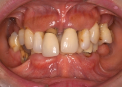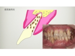 また、もう一つ重要な事が力の要素です。想像してみて下さい。地盤の悪い所に立てた浅く植え込んだ杭は、大地震ではなく、風が吹いただけでも揺れてしまいます。我々の歯は、この揺れ、特に横揺れには極端に弱く出来ています。垂直的に支えられる力の1/10〜1/8程度しか負担できません。ですから、部分入れ歯の金具のかかっている歯や、ブリッジの土台になる歯は悪くなりやすいのです。プラークコントロールとともに、この力のコントロールもとても重要です。