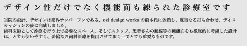 通常の歯科治療ユニット以外に、大型の照明器具や、マイクロスコープを設置するにあたり、天井の高さから設計し、無理なく機能できるレイアウトとなりました。また、マイクロスコープの画像は前方の48インチ大型モニターに表示され、スタッフのより正確なアシスタントワークに一役かっています。