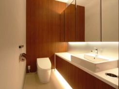 当院自慢のPowder Roomです。広々とした大変清潔な部屋に診療終了後のお化粧なおしもし易いように大型のミラーを配置しました。